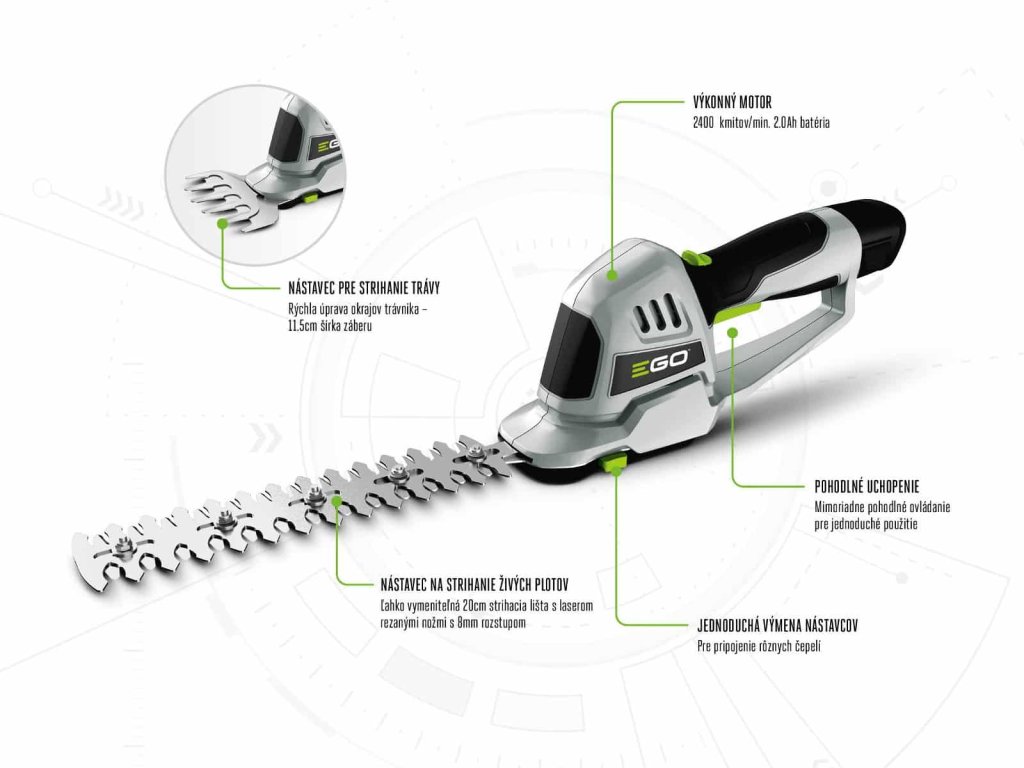 EGO POWER+ 12 V Akumulátorové nožnice na trávu a živý plot CHT2001E