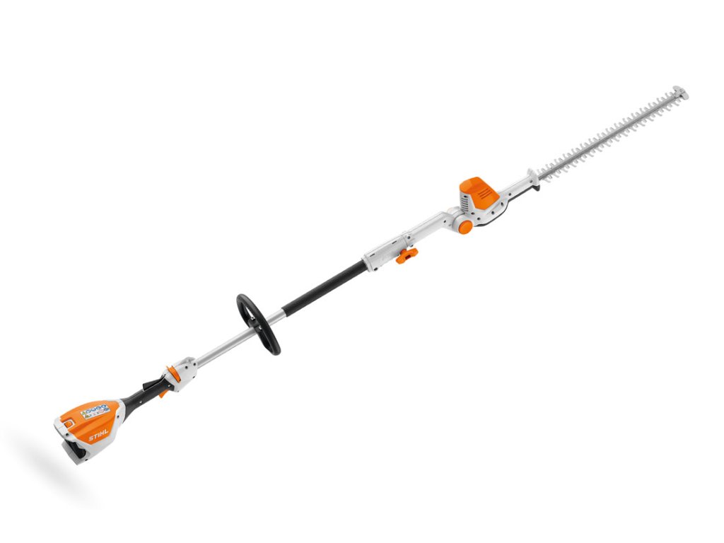 Ľahké akumulátorové nožnice na živý plot na strihanie kríkov v záhrade a pri dome. Jednostranne brúsené nože, uhol nastaviteľný od – 45° do + 90°, deliteľná tyč pre jednoduchú prepravu. Prepravná dĺžka 115 cm, celková dĺžka 210 cm, hmotnosť 3,8 kg.